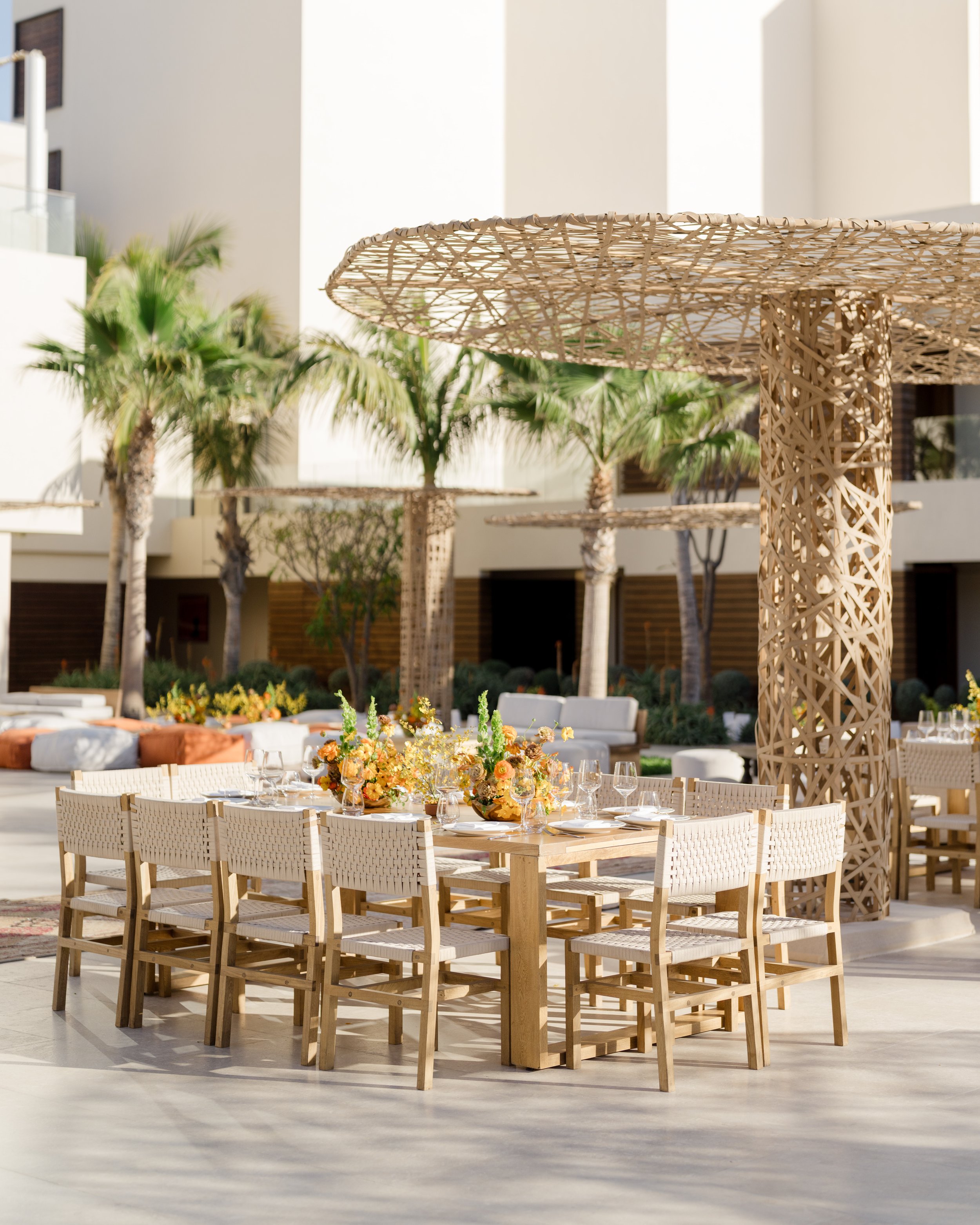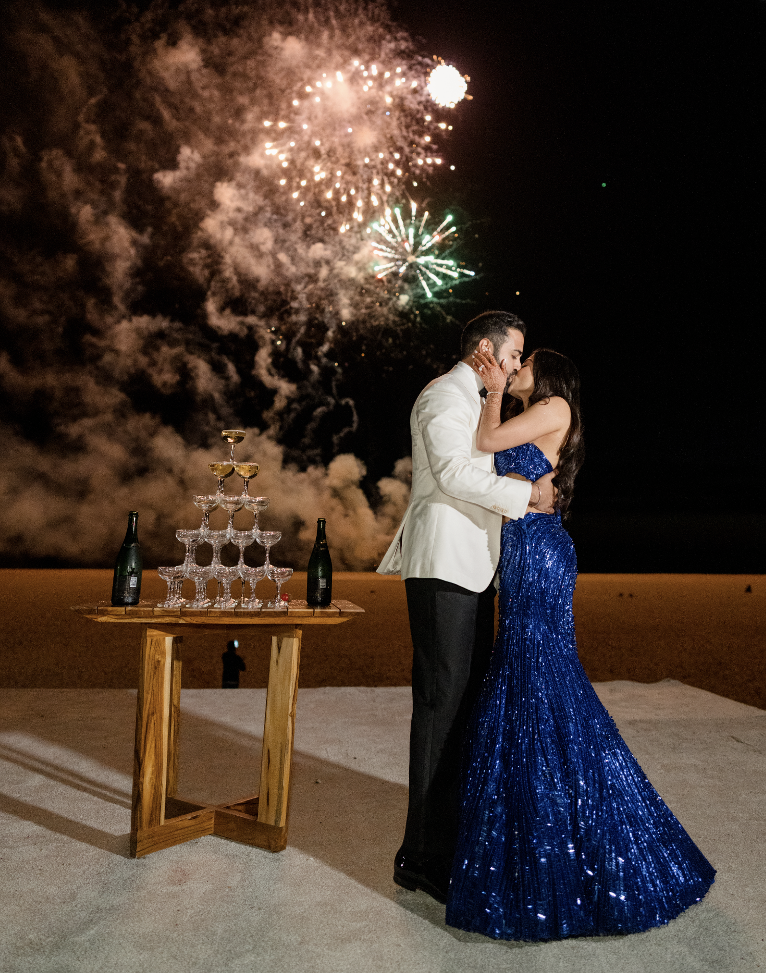 Srini and Neil’s wedding at Nobu Hotel Los Cabos was designed as a living expression of their story—where Tamil and Gujarati traditions met a distinctly modern, architectural vision. From a welcome night that echoed their first trip to Nobu with live music and coastal energy, to a ceremony centered beneath a sculptural lotus mandap in soft pinks and greens, every moment felt intentional and deeply personal. Srini honored her heritage in a red Kanjeevaram sari, heirloom temple jewelry, and jasmine flowers before changing into a red lehenga in tribute to Neil’s roots, while Neil wore a custom sherwani and a ring passed down from Srini’s great-grandfather. Thoughtful details—from family recipes woven into the menus to rituals from both cultures—gave the weekend a sense of authenticity and meaning, culminating in a New York–inspired reception that carried the celebration late into the night, equal parts elegant, joyful, and unforgettable.